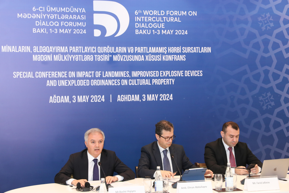 A special conference on the theme “Impact of landmines, improvised explosive devices and unexploded ordinances on cultural property” has been held at the Aghdam Conference Center as part of the 6th World Forum on Intercultural Dialogue.