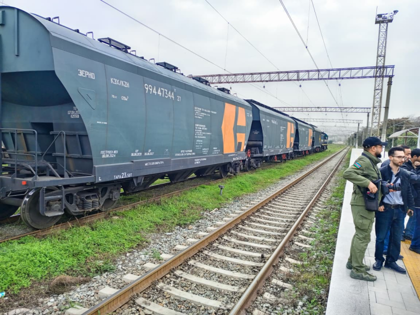 A train carrying 15 wagons of grain from Kazakhstan to Armenia has today arrived at the Bilajari Railway Station.