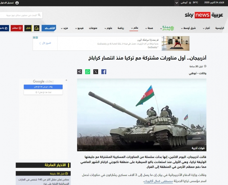 The Arab media outlets, including “Al-Hurra”, “Al-Ahram”, “Sharjah24”, as well as “SkynewsArabia”, “Al-Jazeera”, “Al-Arabiya” TV channels have published articles and broadcast reportages highlighting Azerbaijani-Turkish joint tactical exercises.