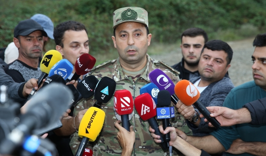 “We are currently at one of the abandoned fighting positions located in the vicinity of the city of Shusha, which belonged to the illegal Armenian armed formations during the implementation of the local anti-terrorist measures,” Chief of the press service of the Ministry of Defense, Colonel Anar Eyvazov told journalists.