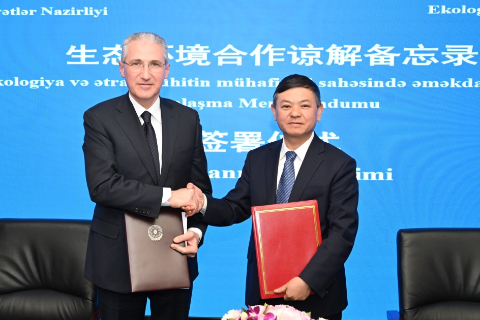 Azerbaijan`s Ministry of Ecology and Natural Resources and the Ministry of Ecology and Environment of the People’s Republic of China have signed a memorandum of understanding (MoU) on cooperation in the area of ecological and environmental protection, in Beijing.