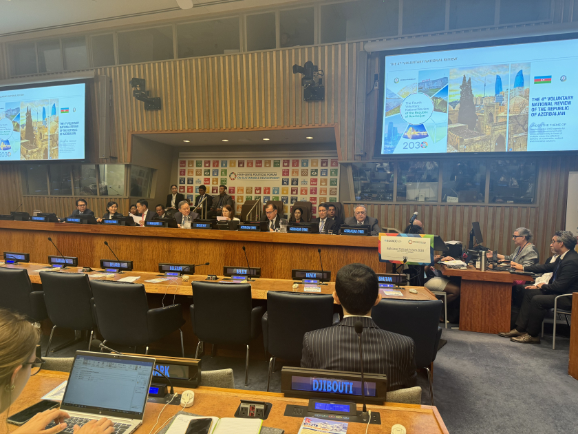 Azerbaijan’s Deputy Minister of Economy Sahib Mammadov presented the country’s 4th Voluntary National Review on the implementation of the Sustainable Development Goals (SDGs) at the High-Level Political Forum held at the United Nations Headquarters in New York, U.S.