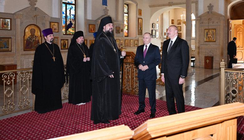 Ilham Aliyev, President of the Republic of Azerbaijan, and Vladimir Putin, President of the Russian Federation, visited the Holy Myrrhbearers Cathedral in Baku on August 19.