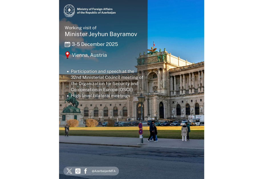During his visit, Bayramov will participate in and deliver a speech at the 32nd OSCE Ministerial Council meeting, scheduled for December 4–5.
