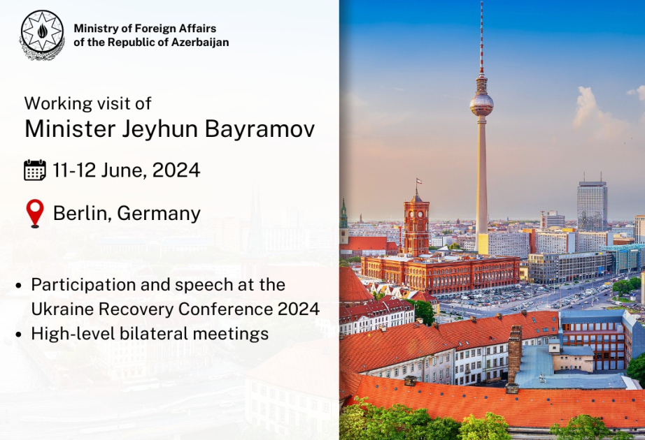 As part of the trip, the Azerbaijani top diplomat will attend and address the Ukraine Recovery Conference 2024 scheduled to take place in Berlin on June 11-12. Bayramov will also engage in bilateral meetings on the sidelines of the event.