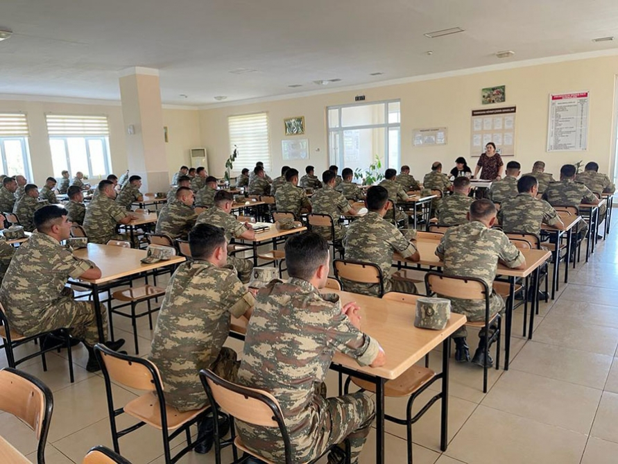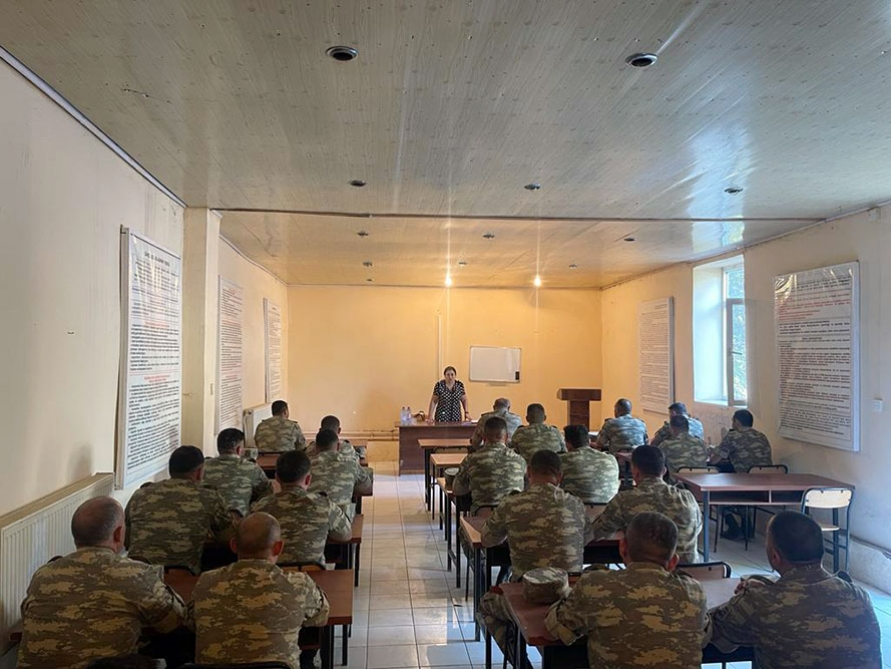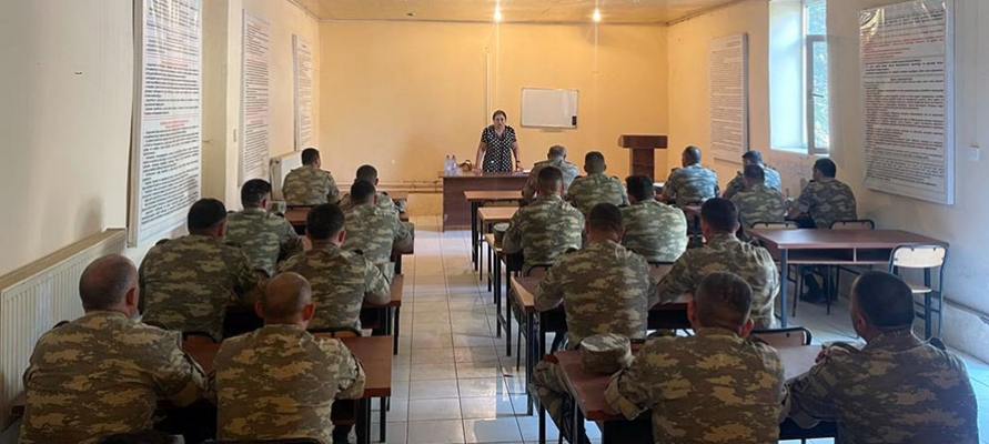 According to the order of Azerbaijan’s Minister of Defense, the representatives of the Office for Women and Families of Servicemen of the Main Department for Personnel of the Ministry of Defense have held meetings aimed at educating military personnel and civilian employees, improving their moral and psychological readiness, and promoting national and moral values.
