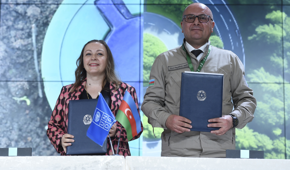 The document was inked by Vugar Suleymanov, Chairman of the Board of the Mine Action Agency of the Republic of Azerbaijan and Alessandra Roccasalvo, UNDP Resident Representative a.i. in Azerbaijan.