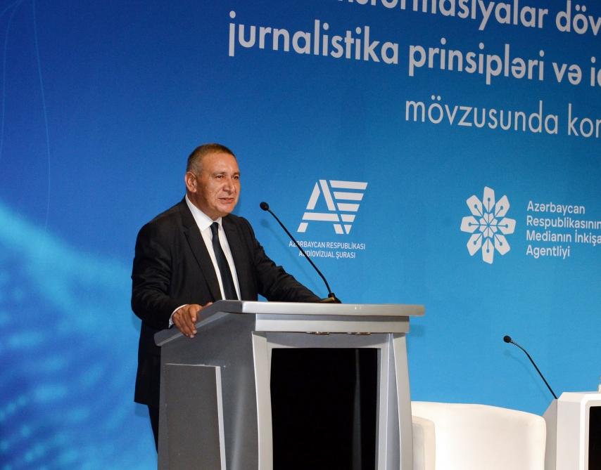 The event started with the performance of the National Anthem of Azerbaijan. The memory of Azerbaijani martyrs, who gave their lives for the country`s territorial integrity was honored with observing a minute of silence. The conference was co-organized by the Audiovisual Council of the Republic of Azerbaijan, Media Development Agency and Azerbaijan Press Council.
