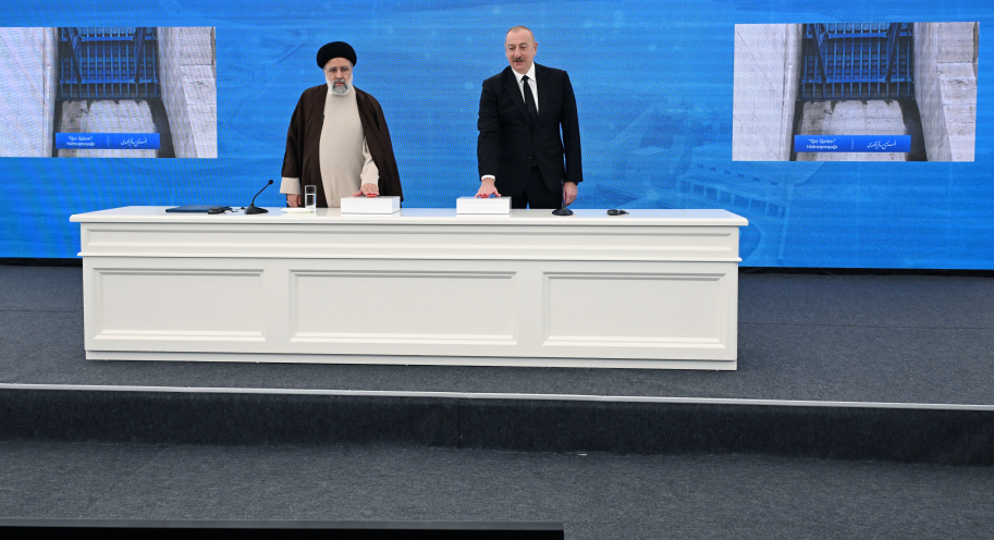 A ceremony to commission the “Khudafarin” hydroelectric complex and inaugurate the “Giz Galasi” hydroelectric complex on the Araz River has got underway with participation of Ilham Aliyev, President of the Republic of Azerbaijan and Seyyed Ebrahim Raisi, President of the Islamic Republic of Iran.