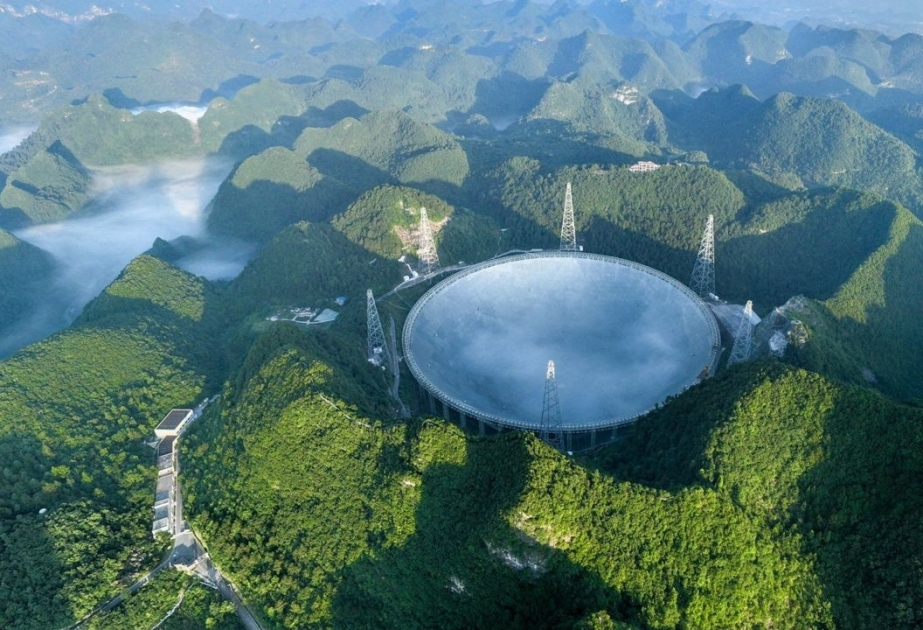 Dubbed the “China Sky Eye,” the telescope is located in a naturally deep and round karst depression in the southwestern province of Guizhou. It has a reception area equal to 30 standard football fields.