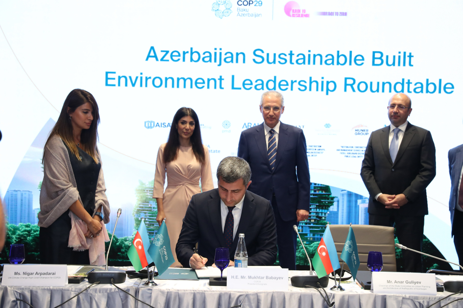 A declaration on “Azerbaijan Sustainable Built Environment Leadership” was signed during the Azerbaijan Sustainable Built Environment Leadership Roundtable. This event was held as part of the preparations for the 29th session of the Conference of the Parties to the UN Framework Convention on Climate Change (COP29), which will be held in Baku.