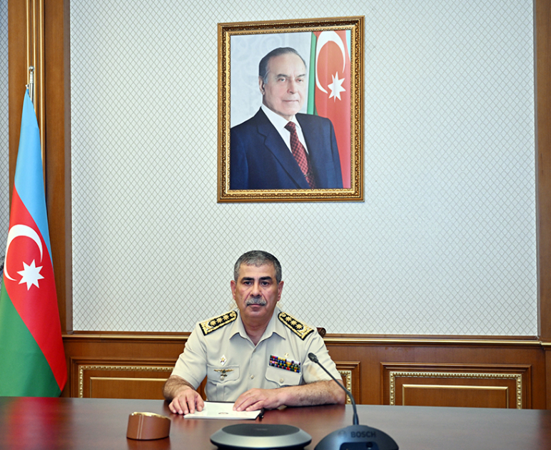 The meeting, held under the leadership of Minister of Defense, Colonel General Zakir Hasanov via video teleconference, was attended by Deputies of the Defense Minister, Commanders of types of troops (forces), Chiefs of Main Departments, Departments, Services and independent branches, Commanders of army corps and formations, as well as Chiefs of special educational institutions.
