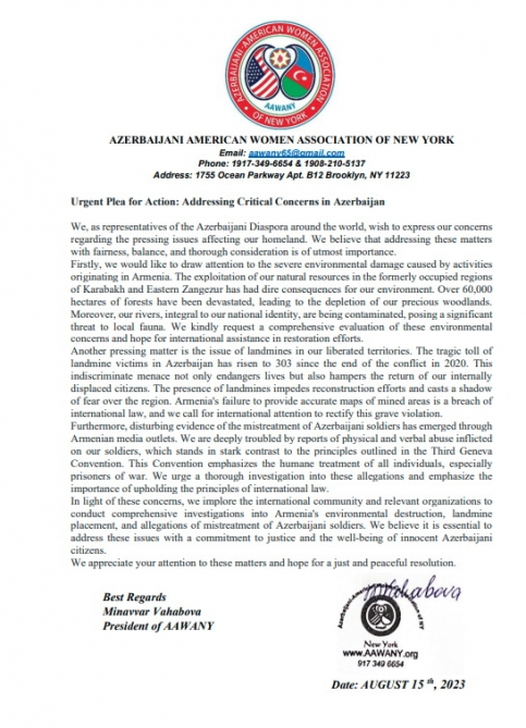 15 coordination councils operating in foreign countries and Azerbaijani diaspora organizations in 38 countries appealed to the international community regarding the situation in the South Caucasus region and supporting Azerbaijan’s peace efforts.