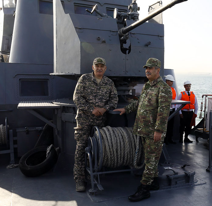 The Defense Ministers observed the fulfillment of tasks on the relevant episodes in the territorial waters of the Azerbaijani sector of the Caspian Sea and positively evaluated the progress of the exercises.