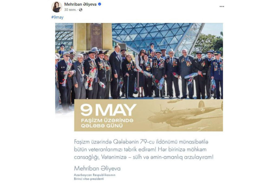 Mehriban Aliyeva, First Vice-President of the Republic of Azerbaijan, shared a post on her social media account on the occasion of 9 May – Victory Day.