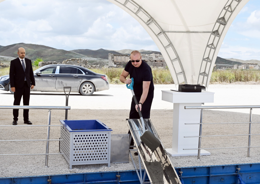 President of the Republic of Azerbaijan Ilham Aliyev attended the ground-breaking ceremony for the village of Mashanli in Jabrayil district.