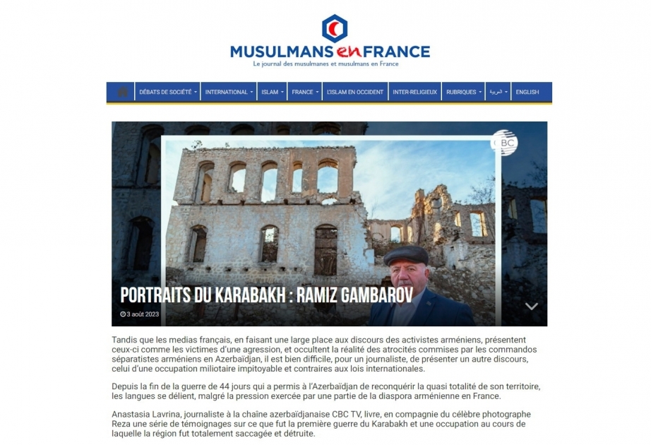 France-based “Musulmans en France” news portal has broadcast a reportage highlighting the Karabakh region of Azerbaijan as well as the city of Shusha – the cultural capital of the country.