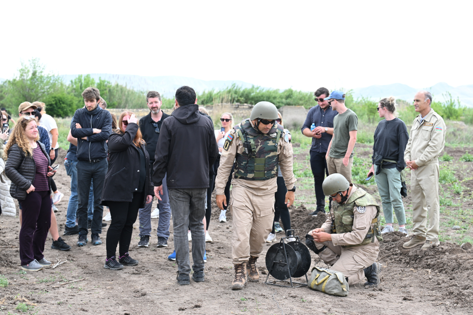 As part of the visit to Azerbaijan’s Karabakh and Eastern Zangezur regions, the delegation of Norwegian “Vagaclub” organization consisting of 30 international travelers observed the process of mine neutralization in Jojug Marjanli village of Jabrayil district.