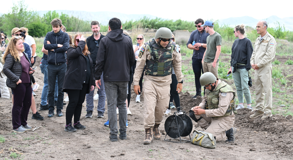 As part of the visit to Azerbaijan’s Karabakh and Eastern Zangezur regions, the delegation of Norwegian “Vagaclub” organization consisting of 30 international travelers observed the process of mine neutralization in Jojug Marjanli village of Jabrayil district.