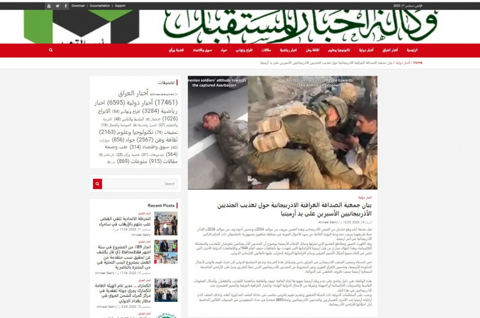 The media outlets of Iraq “Mustaqbil”, “Elamin news”, “Al Nahar news” have published the statement of the Iraq-Azerbaijan Friendship Society regarding the torture of the two Azerbaijani servicemen detained in Armenia.