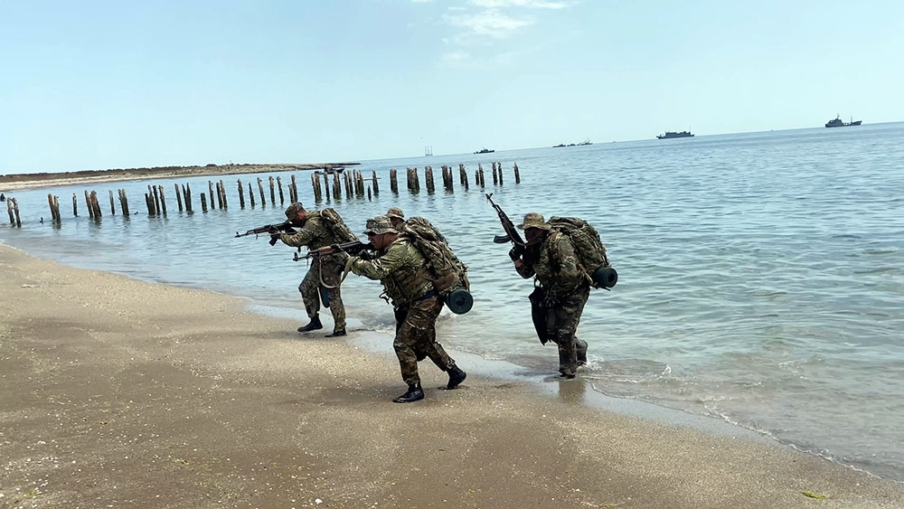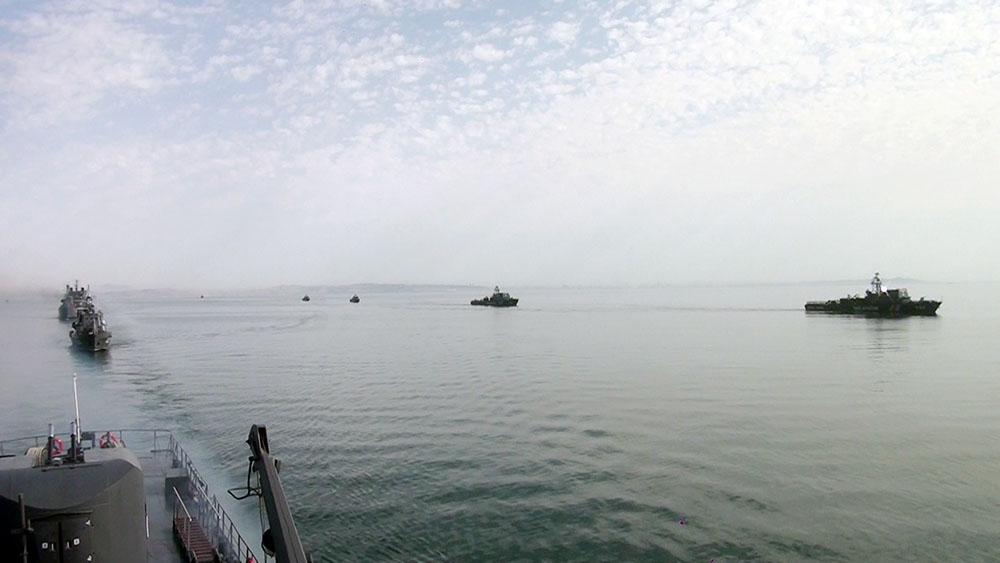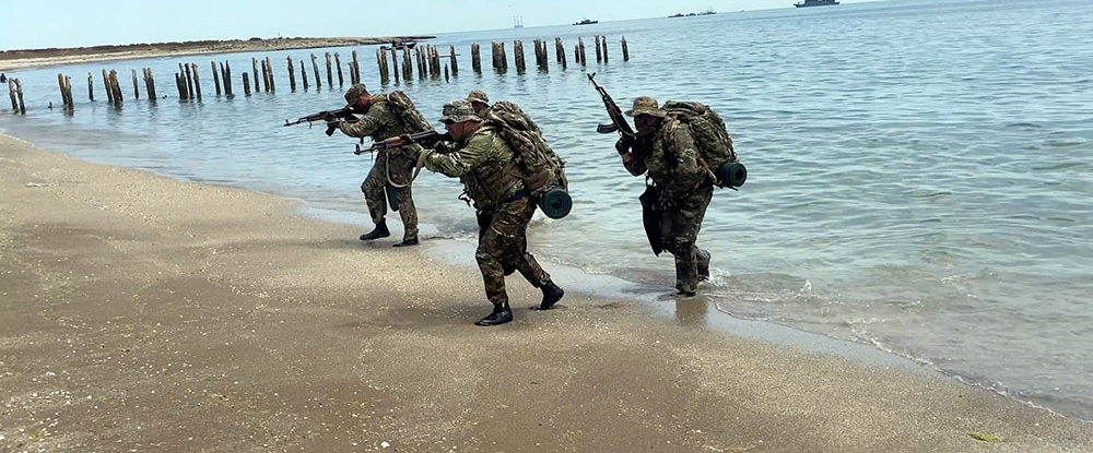 “Khazri Wave” tactical exercises on conducting combat operations during the protection and defense of energy infrastructure in the Azerbaijani sector of the Caspian Sea continue.