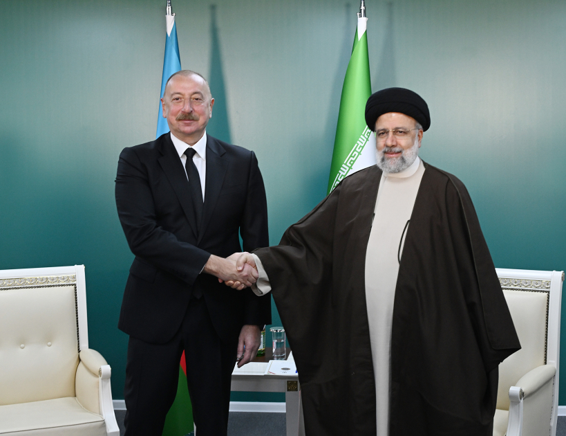 MEETING BETWEEN PRESIDENT ILHAM ALIYEV AND PRESIDENT SEYYED EBRAHIM RAISI COMMENCED AT STATE BORDER BETWEEN AZERBAIJAN AND IRAN