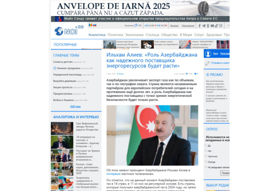 The leading Moldovan news portal “Noi.md” has published an article highlighting Azerbaijani President Ilham Aliyev’s interview with local TV channels.