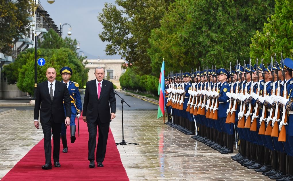 Presidents Ilham Aliyev and Recep Tayyip Erdogan reviewed the guard of honor.