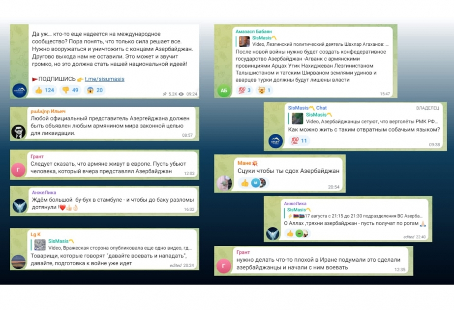 “Among the published comments, there are approaches such as wiping Azerbaijan off the face of the earth, as well as the necessity of launching various provocations against Azerbaijan. This is precisely related to the formation of intolerance against Azerbaijanis against the backdrop of calls for ethnic hatred, which has become part of the state policy in Armenia.