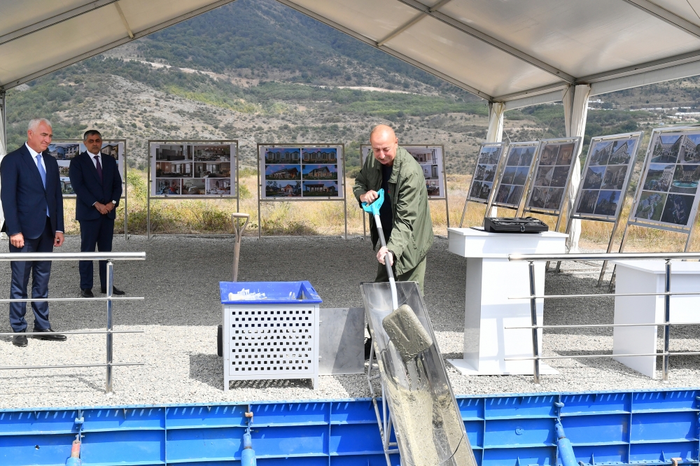 President of Azerbaijan Ilham Aliyev and First Lady Mehriban Aliyeva participated in a groundbreaking ceremony for a hotel complex to be built near the city of Lachin, and the inauguration of a furniture factory in the industrial zone of the Lachin district, got acquainted with the activities of the prefabricated modular house production facility and the small cattle pen, attended the opening of a shooting pavilion of “Hojazfilm” creative studio, the Lachin district secondary school No.2 after major overhaul and the “Hakari Fish Farm”.