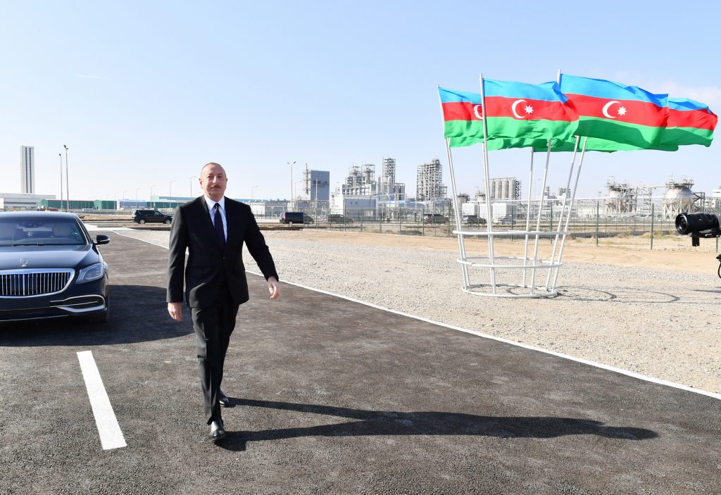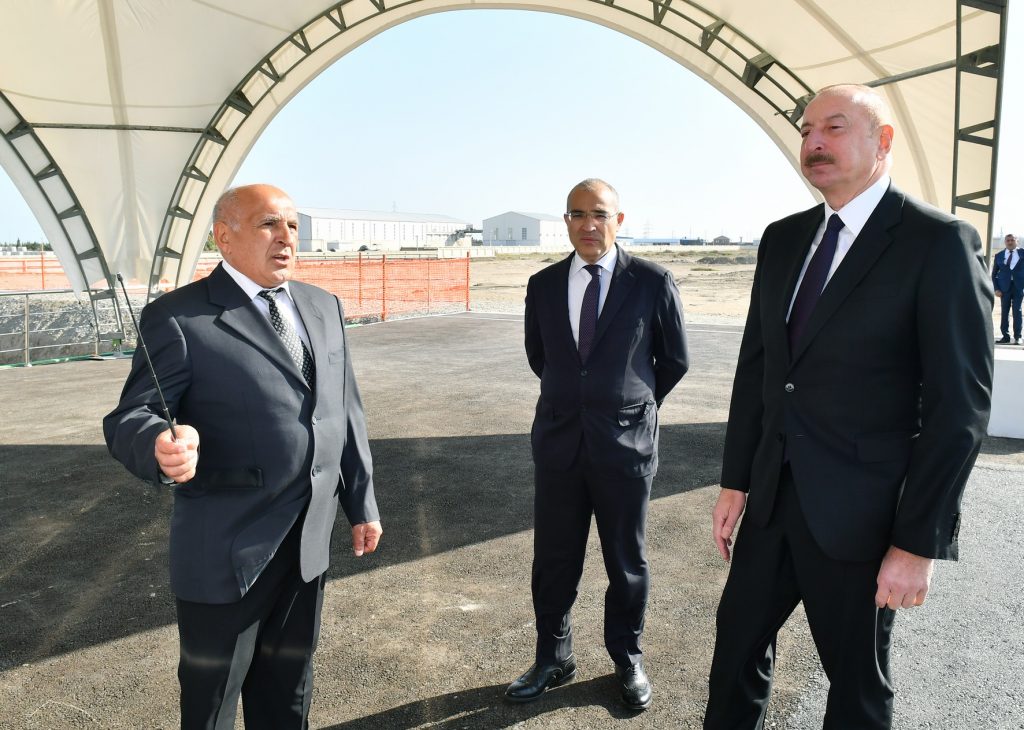 The head of state first laid foundation stones for the technical gases production enterprise owned by “Chinar-Service” Production Commercial Company and the construction chemicals production enterprise owned by “Kartash Kimya” LLC, and attended opening ceremonies of the polymer additives production enterprise owned by “Novus Plastica” LLC, the packaging manufacturing enterprise owned by “Universal Packing Industry” CJSC and the ceramic tile manufacturing enterprise owned by “Azerbaijan Vanhong Ceramics Co.” in the Sumgayit Chemical Industrial Park.