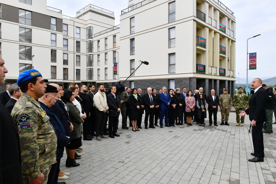 Fuzuli is being completely rebuilt now. While we were here yesterday, we laid the foundation stones of several important facilities. The foundation stones of two villages, a kindergarten, a sports center, new residential quarters, and an office center were laid. So the number of people living here will naturally increase over time. I was informed yesterday that over 800 people have already been accommodated. About 2,000 people will live here by the end of the year. At the end of the first stage of our Great Return Program, at the end of 2026, a total of 22,000 people will live in Fuzuli district, 140,000 people will live in Karabakh and Eastern Zangezur as a whole. In other words, this is the minimum, so to speak. I am sure that a larger number of people will be resettled, because firstly, we have power, we have determination, the Great Return Program has been adopted and is being successfully implemented. It is being exceeded, and the main factor is that our former IDPs are looking forward to these days. For example, I asked the kids both Zangilan and Lachin during our conversation. In other words, how does a child or teenager who was born and raised in Baku and who is used to the atmosphere of a big city come and live in a city or village that is located some distance away? They sincerely said that this is a great happiness. This is the way they were raised, including by your generation. Because they have seen this at home and in school. This is why school and family are important factors in our return here. Because we did not let the youth forget anything. We did not allow the Karabakh topic to be erased. There were many countries and forces that wanted to instill this in us, i.e. we need to come to terms with the situation, we need to start cooperating with Armenia. Many reiterated that there was no military solution to the conflict. We have shown that there is, and we have shown it again recently. This topic is now closed! The subject of the Karabakh conflict is closed once and for all! The book of separatists is closed once and for all! This is great happiness.