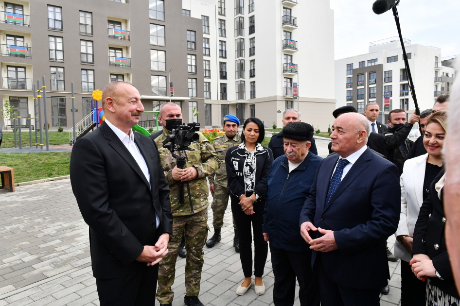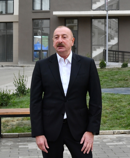 I must also state that today, the ongoing projects implemented both in Fuzuli and in all our other cities and villages establish new rules of urban planning on a global scale, and this is noted not only by me, but also by many international experts. In particular, as you know, the National Urban Development Forum has been held in Azerbaijan twice – in Aghdam and Zangilan, and all our projects were presented there. International organizations highly appreciate them, because the best living conditions have been created here – in terms of the interior of buildings, the interior design of apartments, the principle of floors, the distance between buildings – everything is followed. So there is entire infrastructure and are conditions available for a comfortable life. All our cities will be like Fuzuli. Because we are implementing the first urban development project in Fuzuli. It is true that the people of Lachin returned to their homeland a little earlier than the people of Fuzuli. But because the Armenians had settled illegally in the city of Lachin, some of the buildings were left there, so we simply restored those houses and created the most beautiful conditions. Therefore, the previous urban planning landscape of Lachin is in place. Here though, the city is being completely rebuilt.
