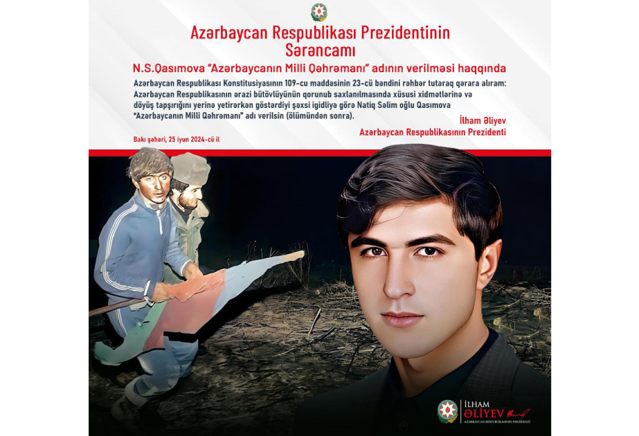 President of the Republic of Azerbaijan Ilham Aliyev shared a post on his social media accounts about National Hero Natig Gasimov.