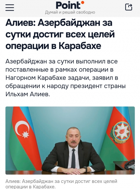 The articles, published in Russian and Romanian languages by “AVA”, “Timpul”, “Journal”, “Point” and other news portals drew the readers` attention to President Ilham Aliyev’s remark “As a result of anti-terrorist measures, Azerbaijan regained its sovereignty in Karabakh”.