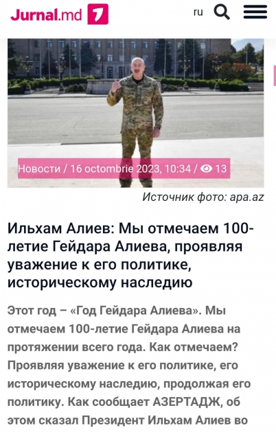 The articles, published by “Noi”, “Unica”, “Radio Europa Libera Moldova”, “Timpul”, “AVA”, “Journal” and other news portals in Romanian and Russian languages, drew the readers’ attention to the fact that President Ilham Aliyev raised the national flag of Azerbaijan and made a speech in Khankendi city.