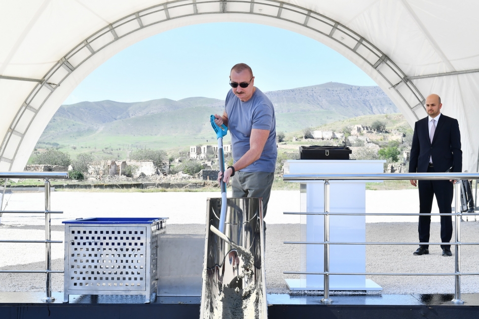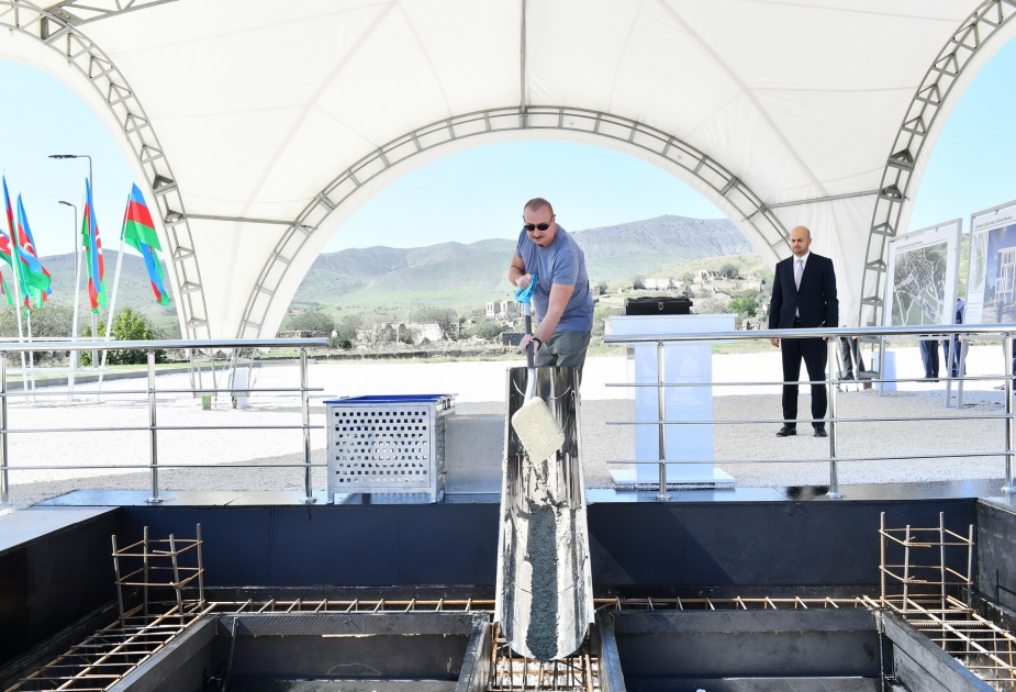 The head of state laid a foundation stone for an administrative building in the city of Jabrayil.