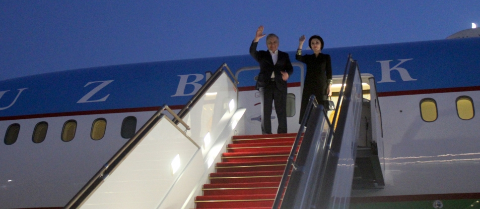 President of Uzbekistan Shavkat Mirziyoyev and his wife Ziroatkhon Mirziyoyeva were seen off by Azerbaijan`s Minister of Foreign Affairs Jeyhun Bayramov, Special Representative of the President of the Republic of Azerbaijan in the liberated territories of the Karabakh economic region (except Shusha district) Emin Huseynov and other officials.