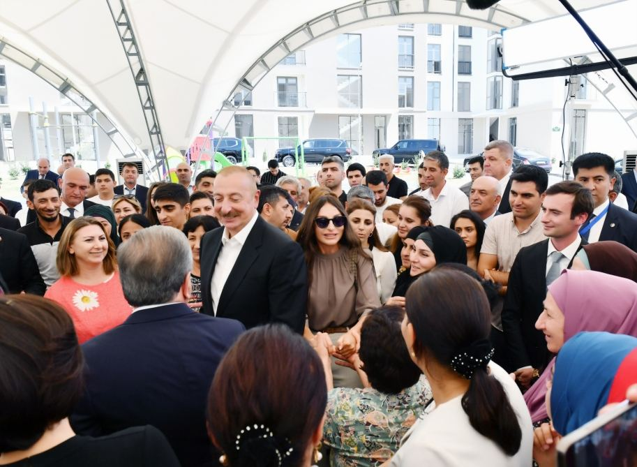 President of the Republic of Azerbaijan Ilham Aliyev, First Lady Mehriban Aliyeva and President of the Republic of Uzbekistan Shavkat Mirziyoyev and his wife Ziroatkhon Mirziyoyeva have met with the newly resettled residents of the MIDA residential complex in Fuzuli.