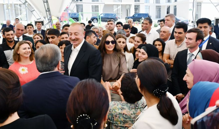President of the Republic of Azerbaijan Ilham Aliyev, First Lady Mehriban Aliyeva and President of the Republic of Uzbekistan Shavkat Mirziyoyev and his wife Ziroatkhon Mirziyoyeva have met with the newly resettled residents of the MIDA residential complex in Fuzuli.