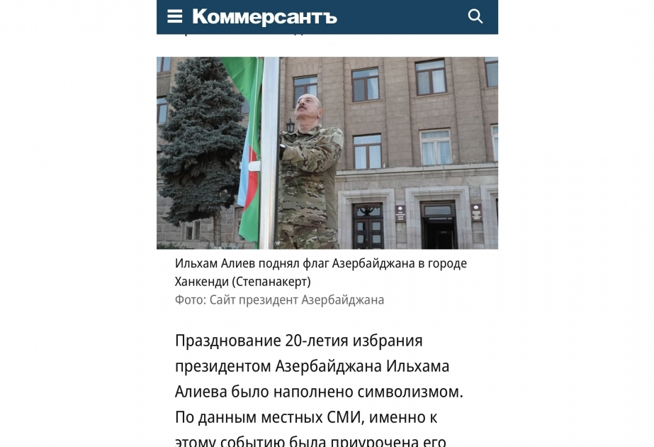 The Russian newspaper “Kommersant” has published an article highlighting President of Azerbaijan Ilham Aliyev’s visit to the city of Khankendi.