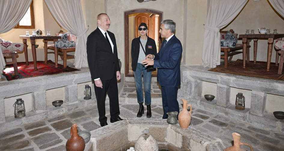 President of the Republic of Azerbaijan Ilham Aliyev and First Lady Mehriban Aliyeva attended the opening of the Shirin Su Bathhouse in Shusha following its restoration.