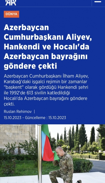 The article, published by “Sozcu” newspaper, quoted the Azerbaijani President as saying: “Three years ago, over the course of the last three years and during the anti-terror operation in September, Azerbaijani soldiers and officers showed true heroism, patriotism and self-sacrifice. We are proud of our Army, our Armed Forces. They are the source of our pride. Not only Azerbaijani citizens but also, I am sure, tens of millions of Azerbaijanis living in the world are rightly proud of Azerbaijani soldiers and officers, and the state of Azerbaijan.”
