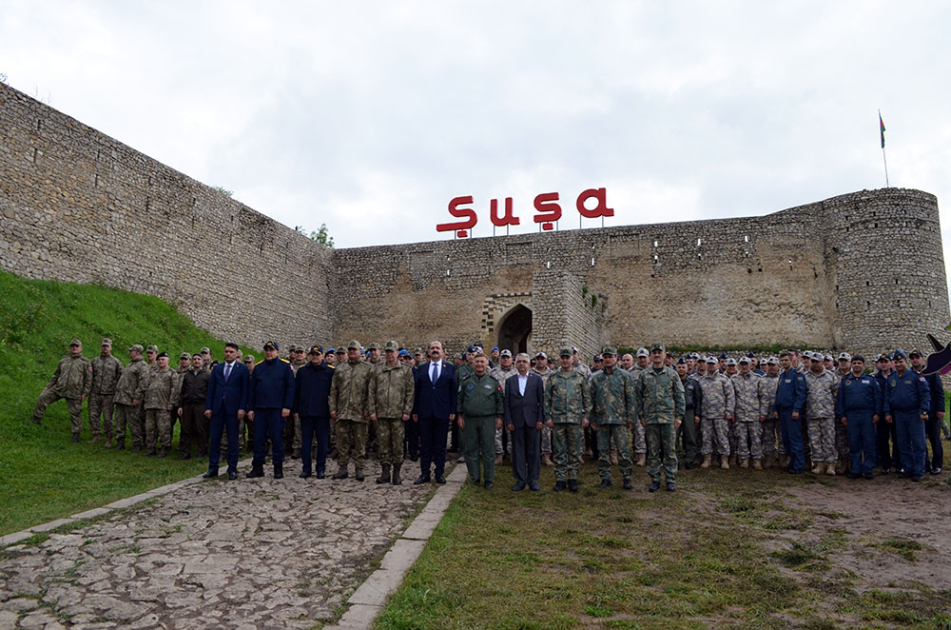 A meeting was held with servicemen, beginning with a minute of silence to honor the National Leader and martyrs, who sacrificed their lives for the sovereignty and territorial integrity of Azerbaijan.