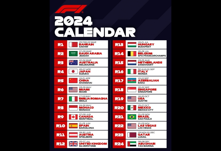 2024-cü ildə keçiriləcək Formula 1 Azərbaycan Qran-Prisinin vaxtı açıqlanıb.
