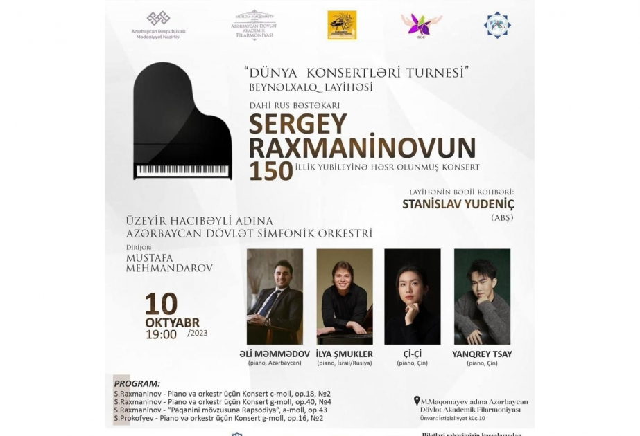 Tanınmış ABŞ musiqiçisi Stanislav Yudeniçin bədii rəhbəri olduğu “Dünya Konsertləri Turnesi” beynəlxalq layihəsi çərçivəsində Bakı şəhərində dünyaşöhrətli bəstəkar Sergey Raxmaninovun 150 illik yubileyinə həsr olunmuş silsilə konsertlər keçiriləcək.
