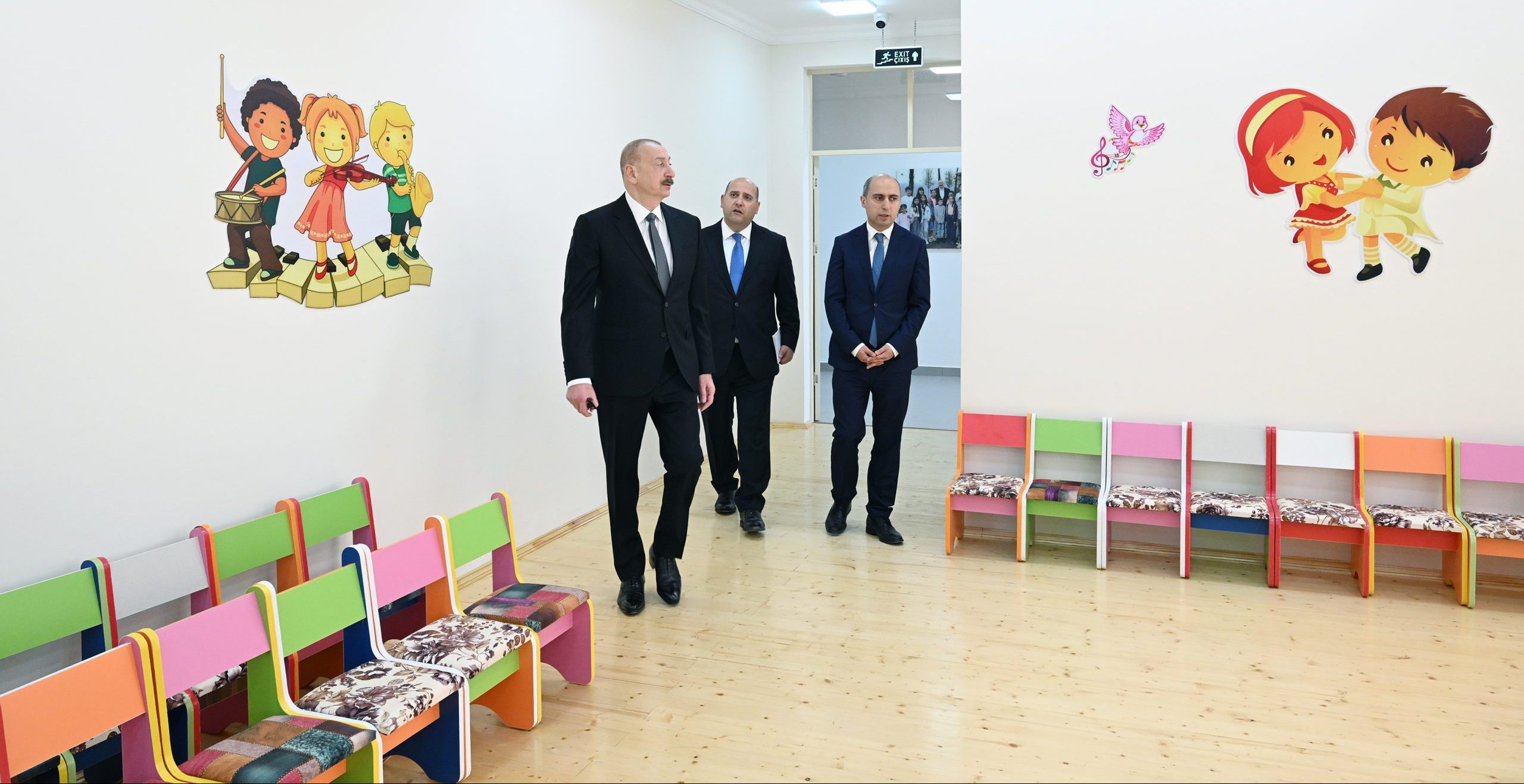 Dövlətimizin başçısına məlumat verildi ki, müasir standartlara uyğun inşa edilmiş 120 yerlik körpələr evi-uşaq bağçasında azyaşlıların təlim-tərbiyəsi ilə məşğul olmaq, onların sağlam mənəvi və fiziki mühitdə yetişmələri üçün hər cür şərait var. Otaqların hamısı zəruri avadanlıqla təchiz olunub. Körpələr evi-uşaq bağçasında 6 qrup fəaliyyət göstərəcək.