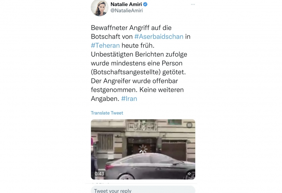 Uzun illər İranda fəaliyyət göstərən almaniyalı jurnalist Nataliya Amiri Azərbaycanın Tehrandakı səfirliyinə hücum barədə ilk xəbər verənlərdən biri olub.