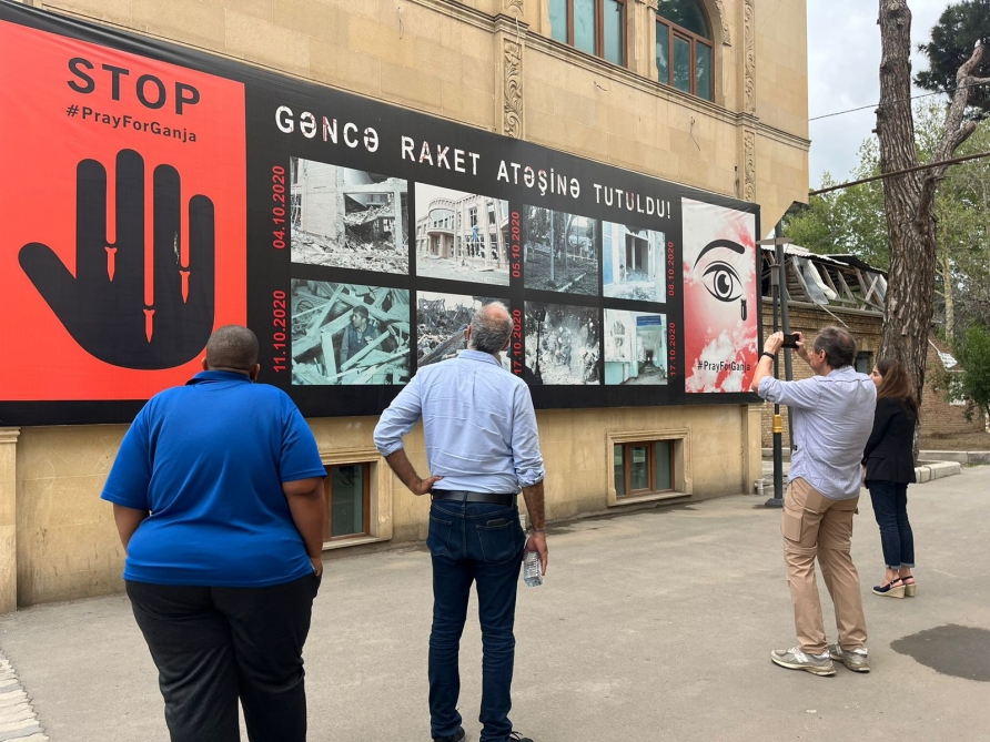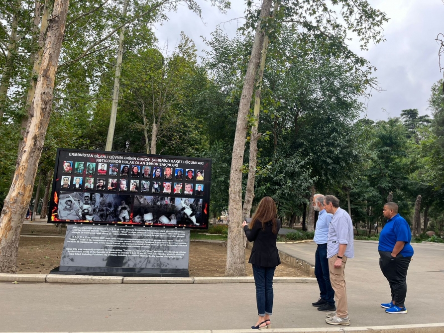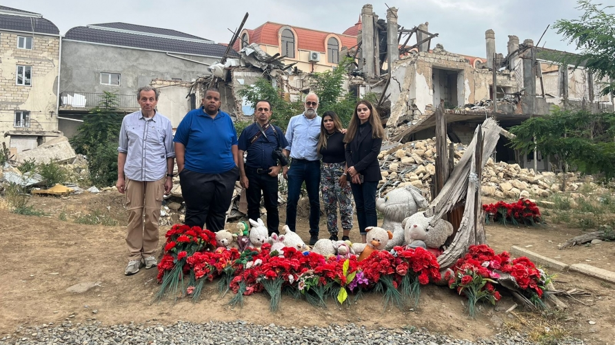 Şəhərin bombardmana məruz qalmış hissəsini ziyarət edən qonaqlar bu dəhşətli hadisə zamanı həlak olmuş dinc sakinlərinin xatirəsini bir dəqiqəlik sükutla yad ediblər.