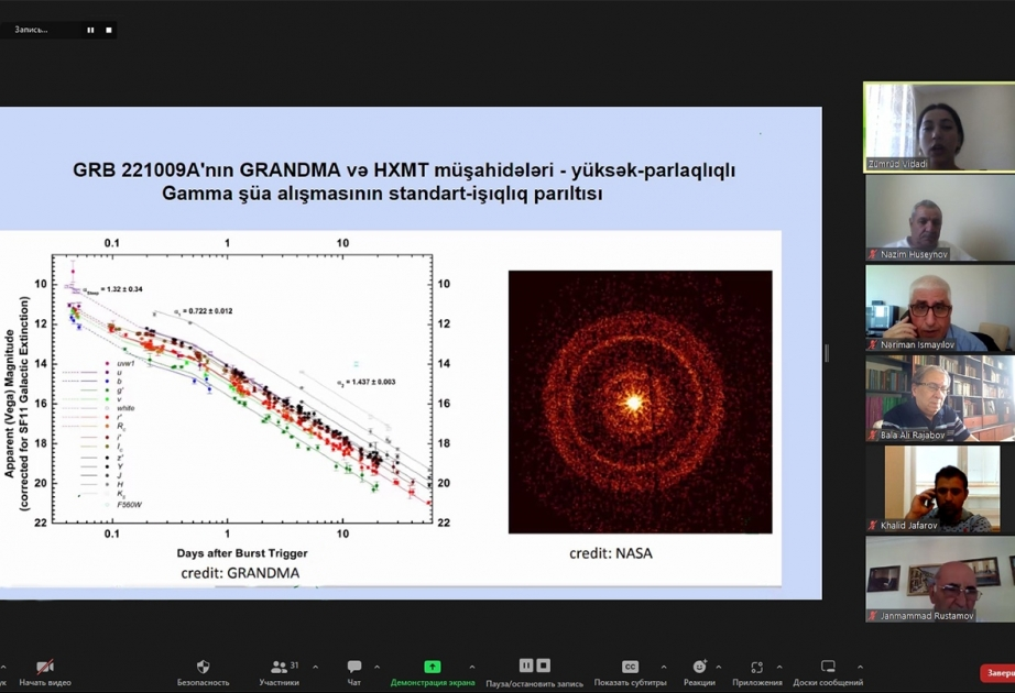 Seminarda rəsədxananın Qalaktikalar və ulduzəmələgəlmə prosesləri şöbəsinin elmi işçisi Zümrüd Vidadi “Qravitasiya Dalğa Astronomiyası. Son 50 ilin ən böyük qamma-şüa alışması” mövzusunda məruzə ilə çıxış edib.